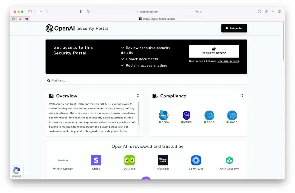 OpenAI hat ein Trust Portal für ihre API eingeführt. Dieses Portal bietet umfassende Informationen über OpenAI’s Ansatz zur Datensicherheit, Datenschutz und Compliance. Es enthält detaillierte Compliance-Dokumentationen und beantwortet häufig gestellte Fragen zu Sicherheit und Datenschutz. Für Geschäftskunden, die ChatGPT nutzen, ist dieses Portal eine wichtige Ressource. Besuchen Sie das Trust Portal, um mehr über OpenAI’s Sicherheitsmaßnahmen zu erfahren.